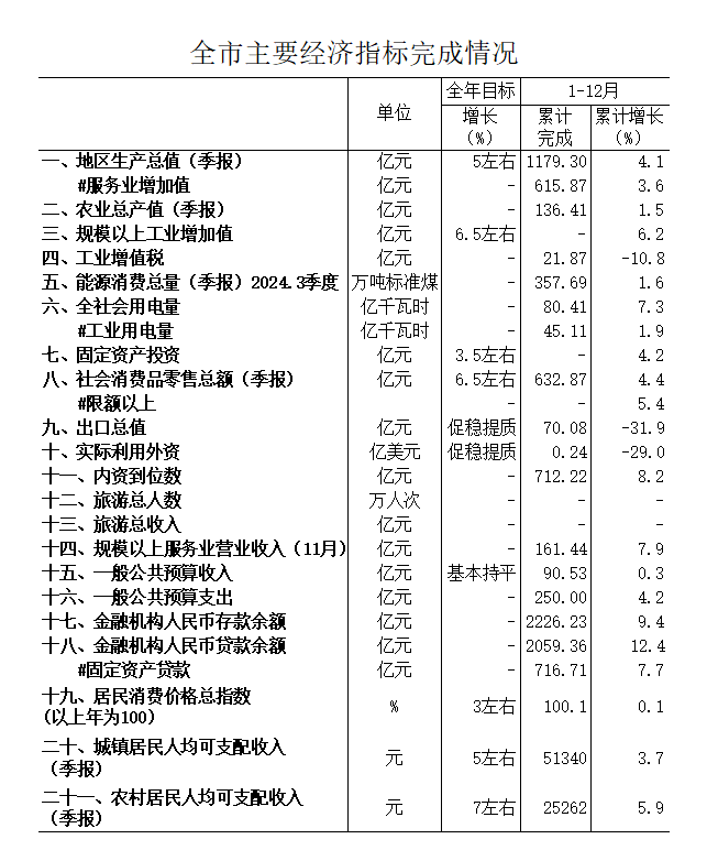 2024年1-12月国民经济主要指标