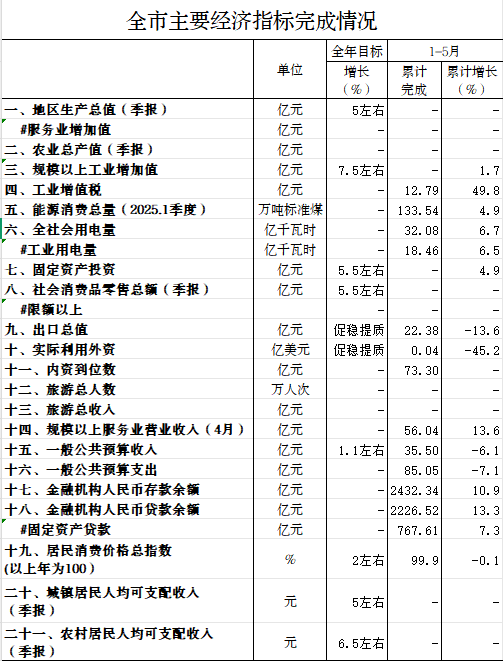 2025年1-5月国民经济主要指标