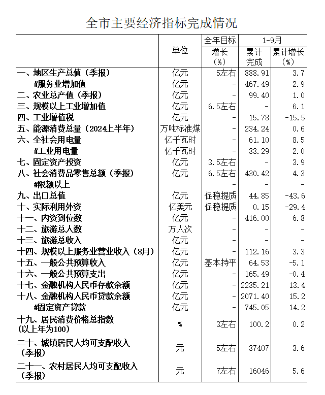 2024年1-9月国民经济主要指标