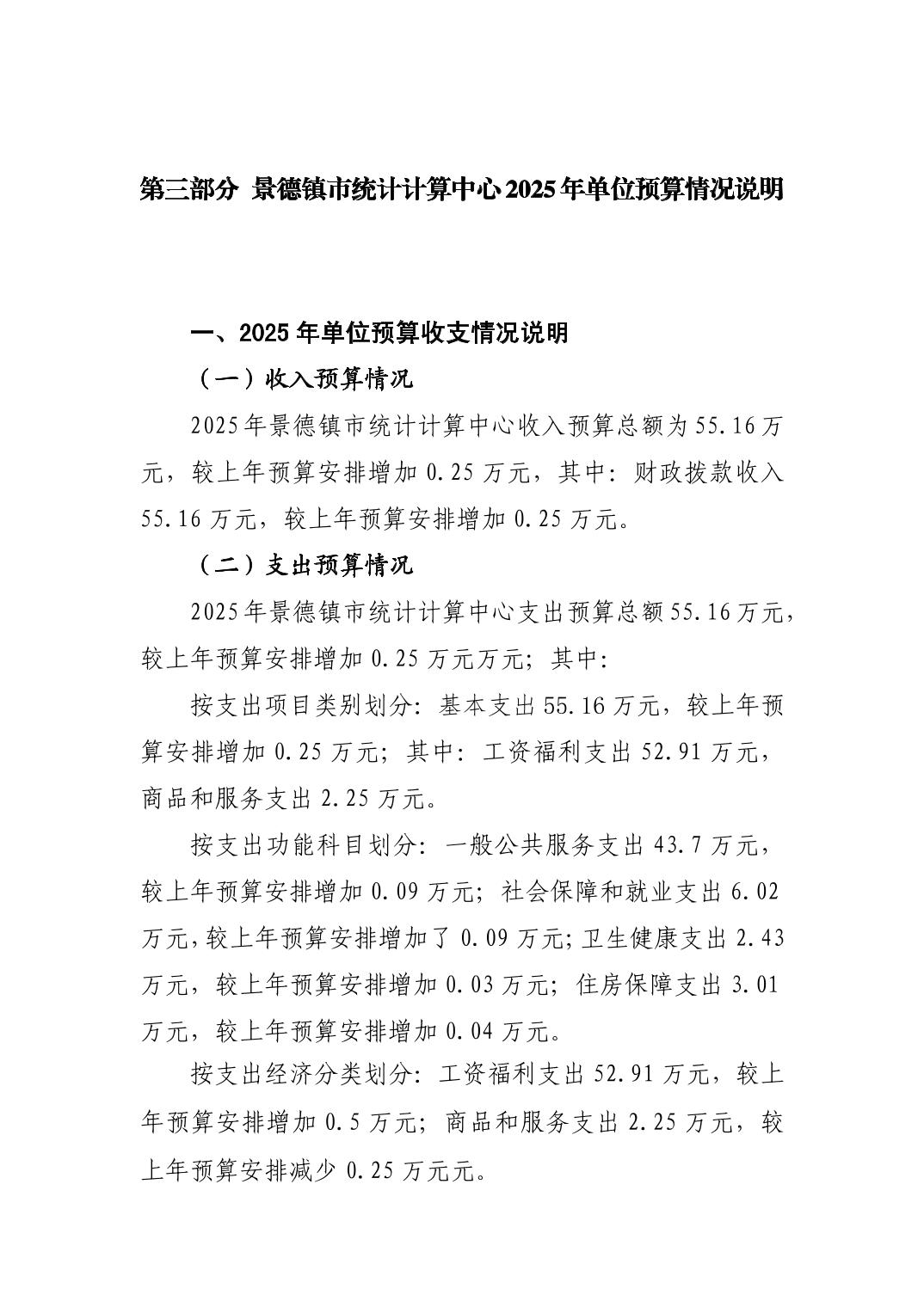 景德镇市统计计算中心2025年单位预算