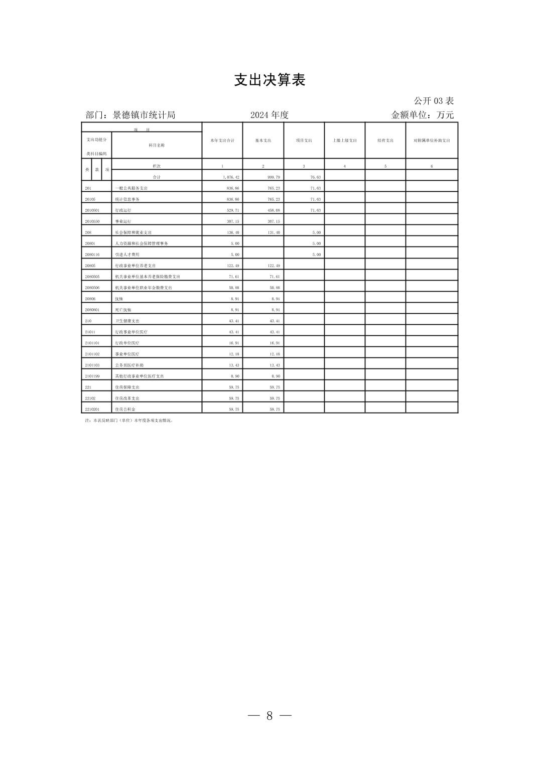景德镇市统计局2024年度部门决算