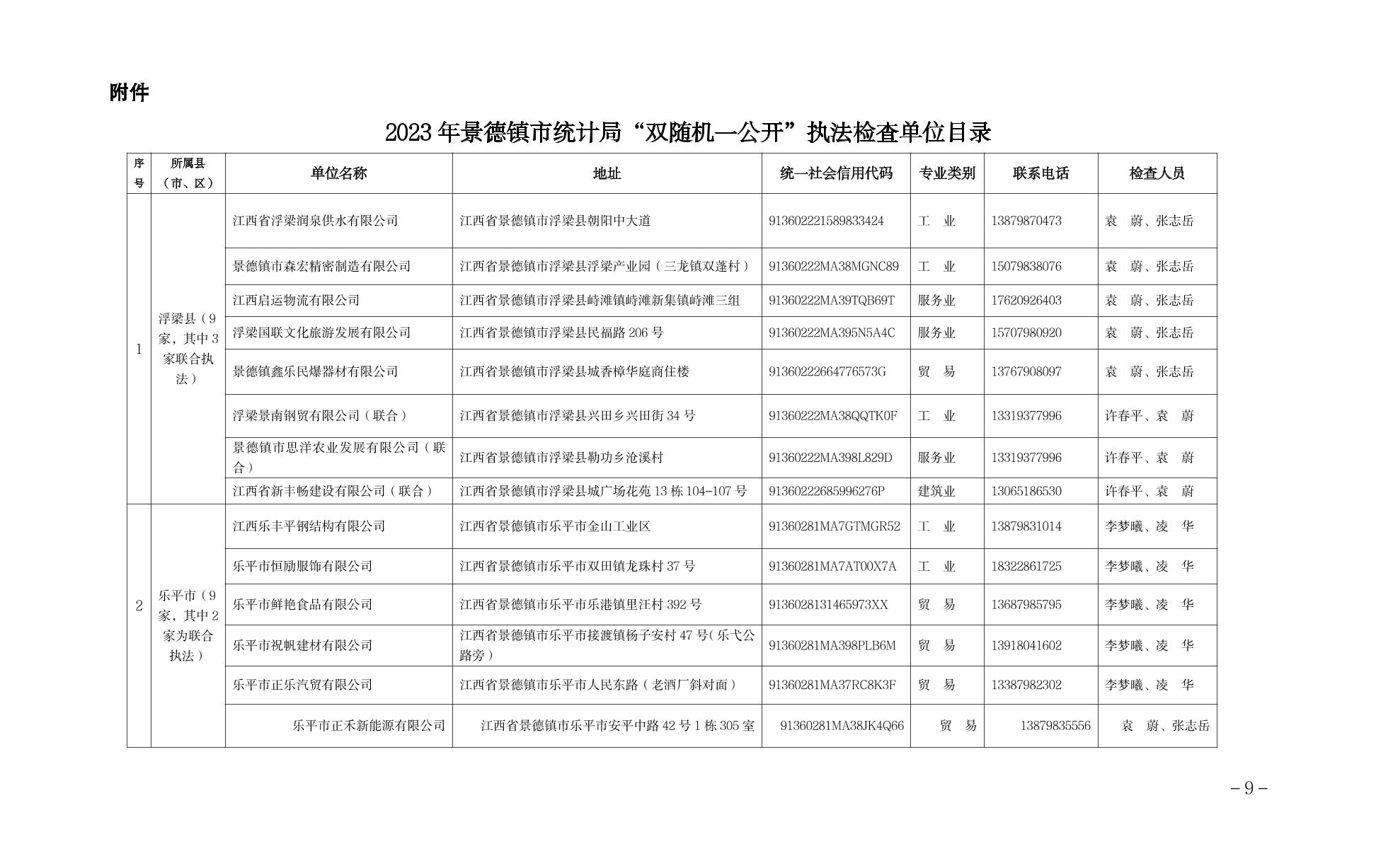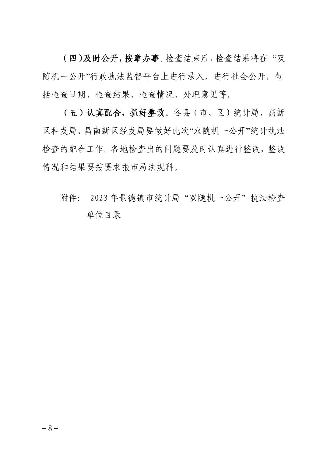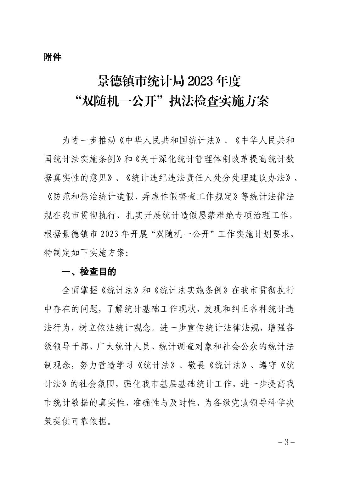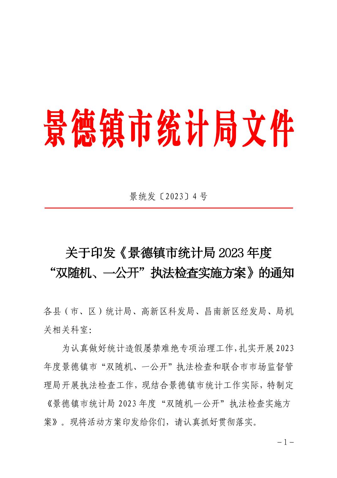 关于印发《景德镇市统计局2023年度“双随机、一公开”执法检查实施方案》的通知
