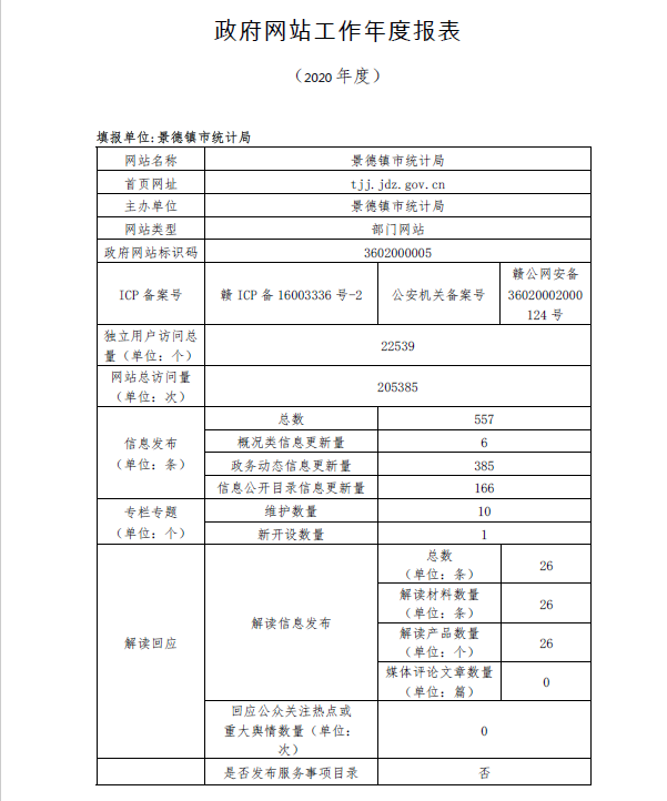 2020年市统计局政府网站年度工作报表
