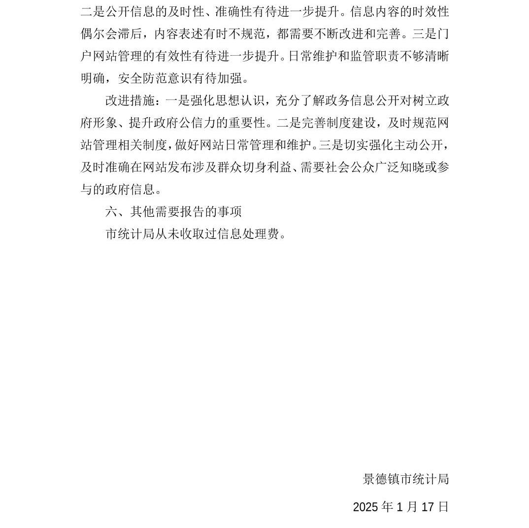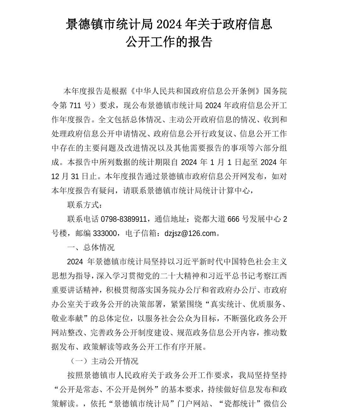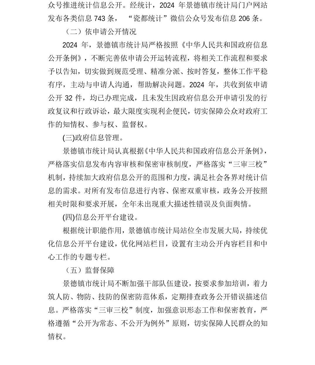 景德镇市统计局2024年关于政府信息公开工作的报告