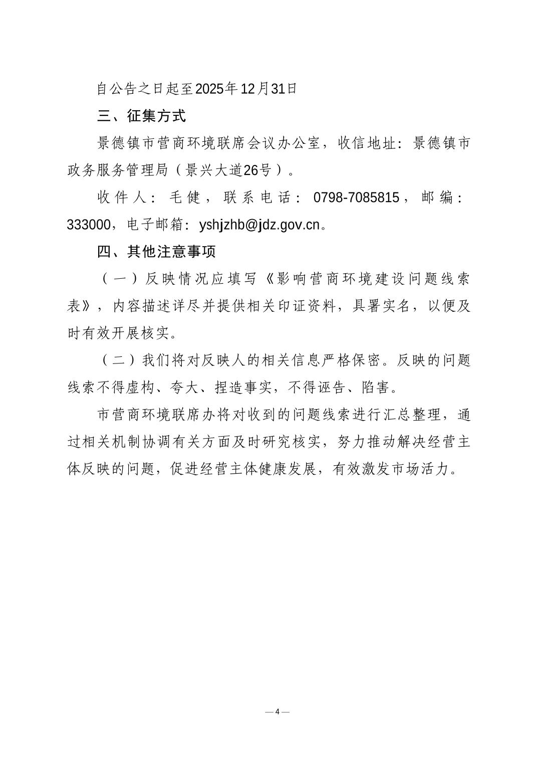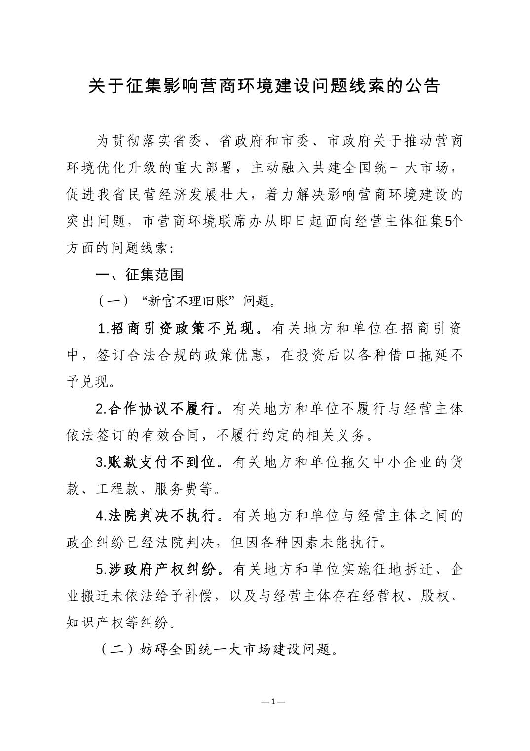 关于征集影响营商环境建设问题线索的公告