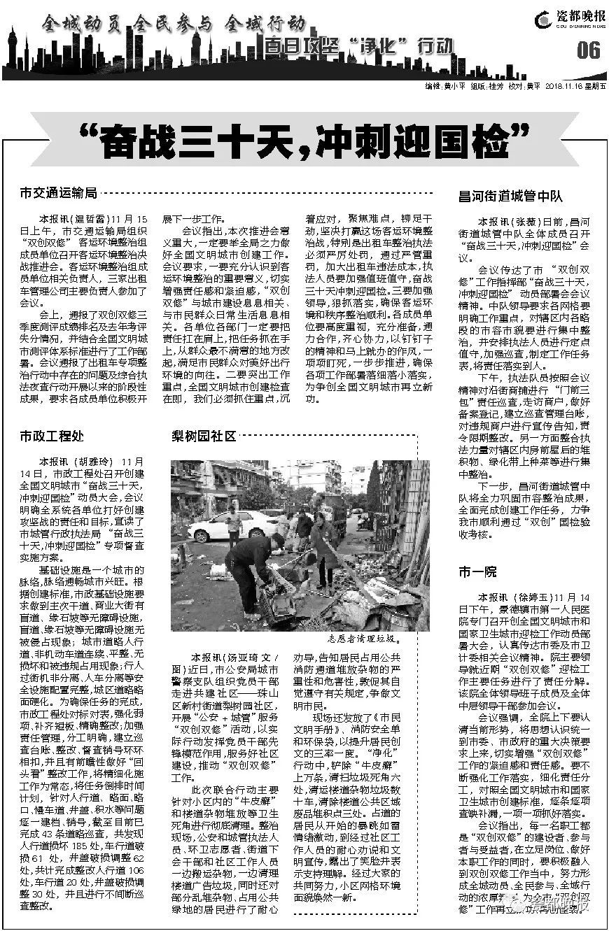在此,希望大家都能积极行动起来,共同为文明城市创建奉献自己的力量!