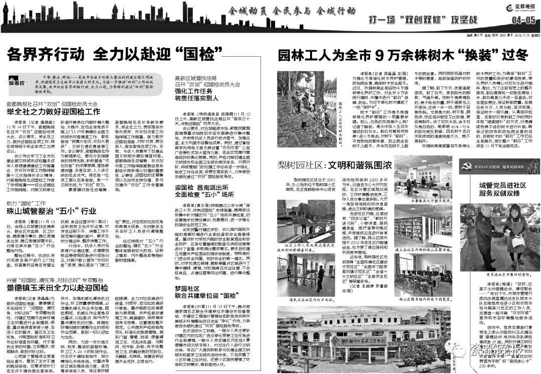 日前,景德镇市“双创双修”指挥部要求,各级各部门迅速行动起来,积极主动做好迎接“测评”的各项工作。